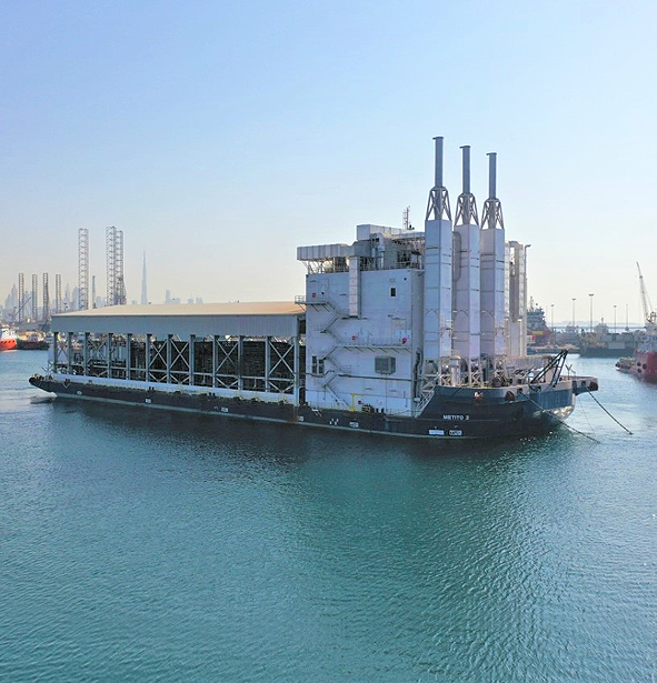 MetiPro completed three unique seawater desalination plants on floating barges, the largest operating of their kind globally, for KSA. Capacity: 50,000 m3/day each.