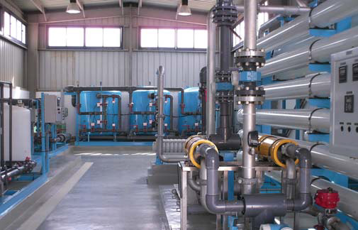 Ion exchange demineralization plant comprising 3 streams of skid-mounted activated carbon polishing filters, clarification exchangers, degassers, anion exchange columns and mixed bed vessels, producing 1500 m³/day per stream
